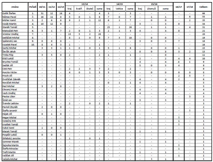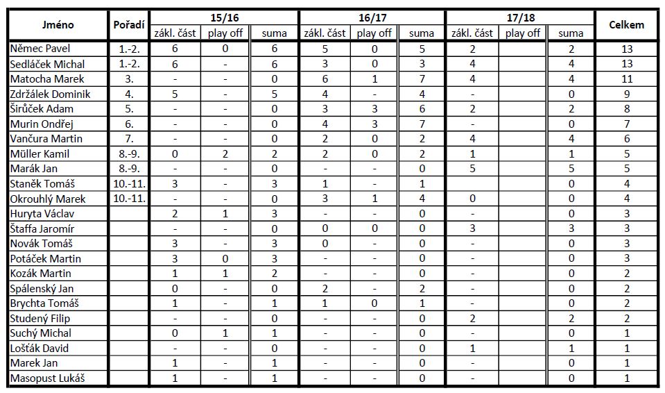 Historická tabulka střelců - kraj