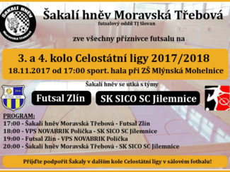 17:00 Šakalí hněv Moravská Třebová – FUTSAL Zlín